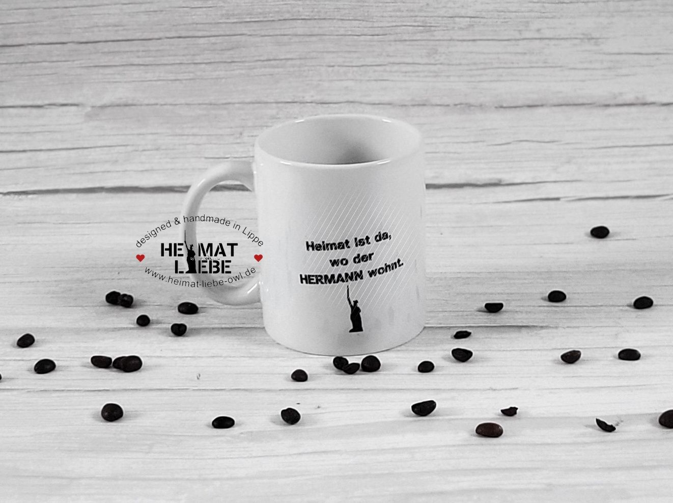 Unisex-Hoodie, innen angeraut, Nahttaschen, Frontdruck und KAPUZENDRUCK "Meine Heimat ist da wo der Hermann wohnt"